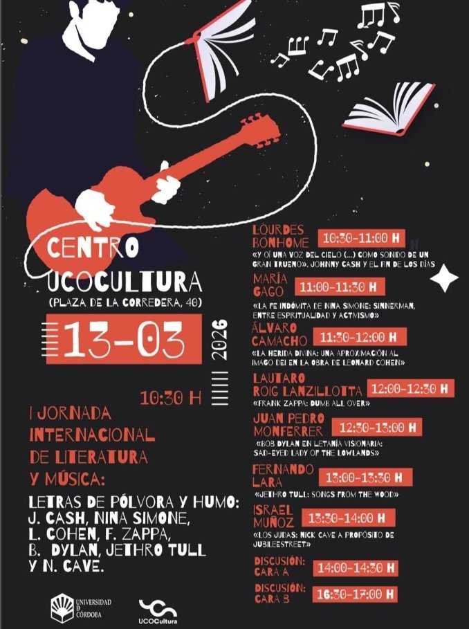 10:30 - 17:00Córdoba. I Jornada Internacional de Literatura y Música: Letras de pólvora y humo
