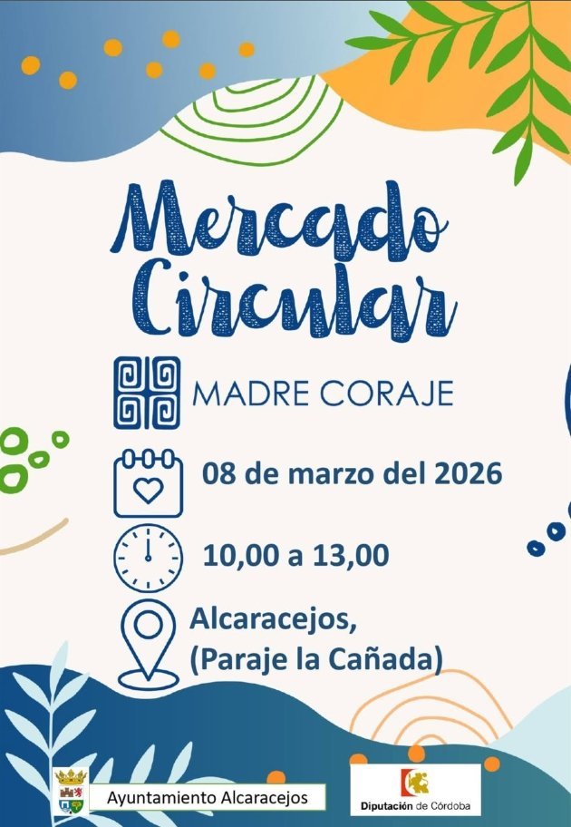 Mercado Circular organizado por Madre Coraje en Alcaracejos, en la zona de Paraje la Cañada. El evento tendrá lugar el 8 de marzo de 2026, con un horario de 10:00 a 13:00.
