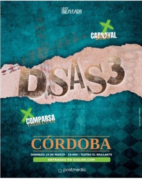Evento de carnaval con la comparsa DSAS3 en el Teatro El Brillante. Entradas disponibles en Giglon.com.