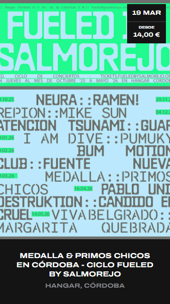 Entradas en https://tickets.fueledbysalmorejo.org/es/events/medalla-primos-chicos-en-cordoba-ciclo-fueled-by-salmorejo