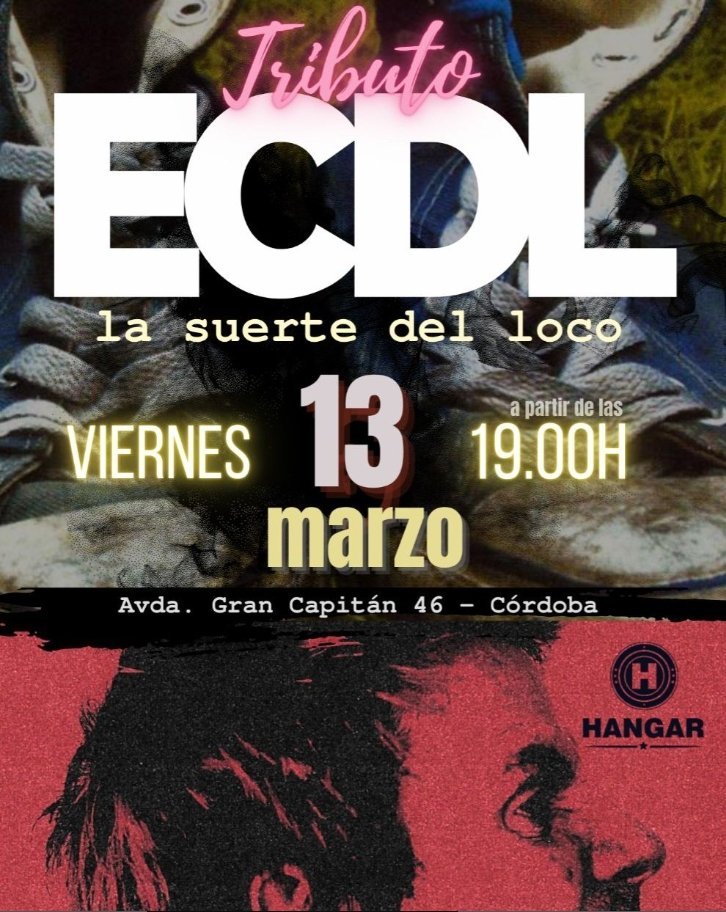 Viernes 13 de marzo 19:00h . La Suerte Del Loco – Tributo ECDL es un concierto-tributo a “El Canto del Loco”, que consigue hacer vibrar al público con uno de los grupos icónicos del pop rock español de las dos últimas décadas. Su más de un millón de discos vendidos y 16 años ininterrumpidos de actividad, así lo atestiguan. Cinco fueron los álbumes de estudio grabados por el grupo: “El Canto del Loco”, “A contracorriente”, “Estados de ánimo”, “Zapatillas” y “Personas”. A lo largo de nuestro espectáculo aparecerán algunas de las piezas de todos ellos.