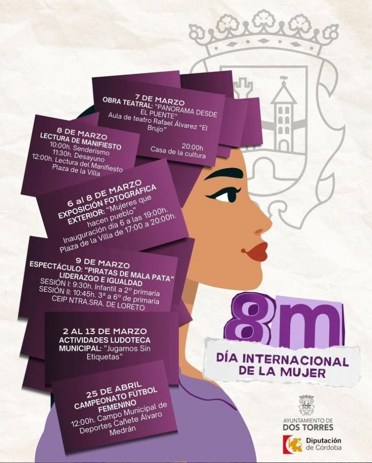 El Ayuntamiento de Dos Torres y la Diputación de Córdoba conmemoran el Día Internacional de la Mujer con diferentes eventos. Este evento es el principal del cartel que agrupa todas las actividades.