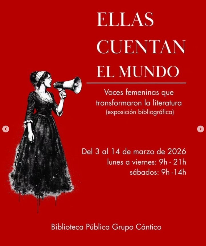 Exposición bibliográfica que destaca voces femeninas que transformaron la literatura. La exposición estará disponible del 3 al 14 de marzo de 2026, con horario de lunes a viernes de 9h a 21h y sábados de 9h a 14h.