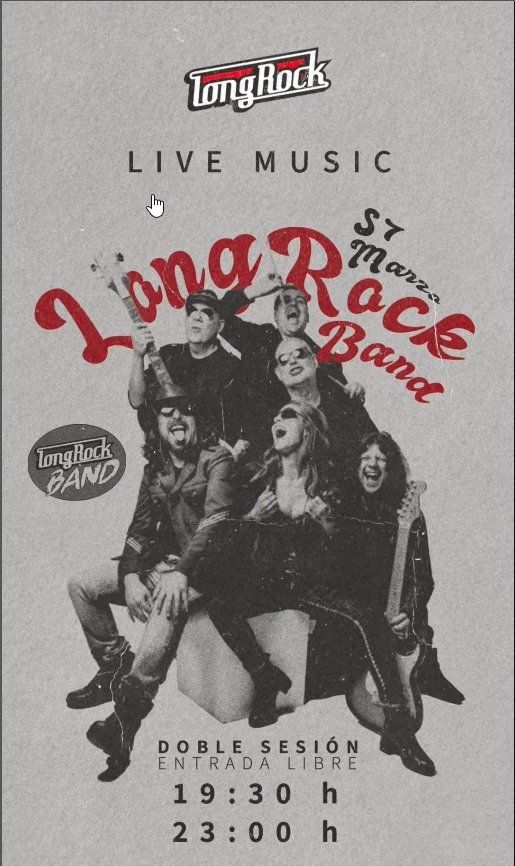 Concierto de la banda Long Rock, con doble sesión de música en vivo. La entrada es libre.