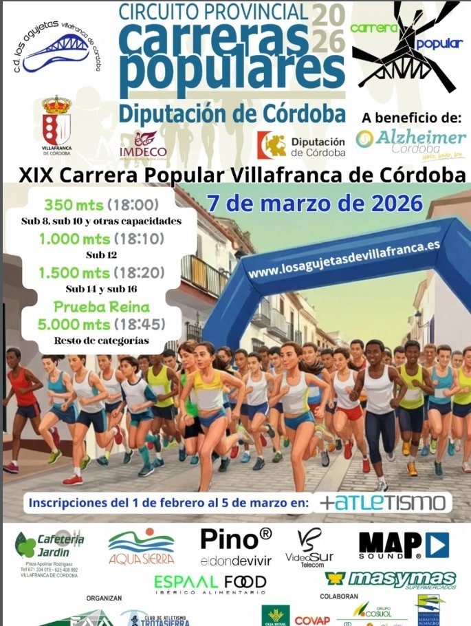Inscripciones en: https://masatletismo.com/2026/03/02/abrimos-inscripciones-para-la-xix-carrera-popular-villafranca-de-cordoba/
