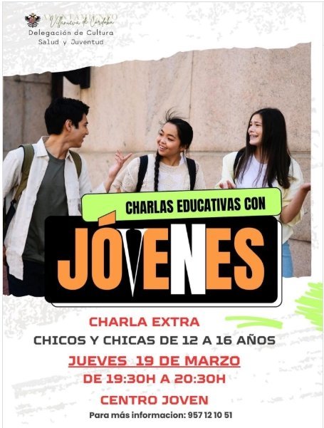 La 𝐁𝐢𝐛𝐥𝐢𝐨𝐭𝐞𝐜𝐚 𝐌𝐮𝐧𝐢𝐜𝐢𝐩𝐚𝐥 𝐉𝐮𝐚𝐧 𝐏𝐚𝐥𝐨𝐦𝐨 𝐏𝐚𝐥𝐨𝐦𝐨, dentro de su programación habitual de charlas mensuales dirigidas a jóvenes, (los últimos miércoles de cada mes), organiza 𝐮𝐧𝐚 𝐬𝐞𝐬𝐢ó𝐧 𝐞𝐱𝐭𝐫𝐚𝐨𝐫𝐝𝐢𝐧𝐚𝐫𝐢𝐚 𝐪𝐮𝐞 𝐬𝐞 𝐜𝐞𝐥𝐞𝐛𝐫𝐚𝐫á 𝐞𝐥 𝐩𝐫ó𝐱𝐢𝐦𝐨 𝐣𝐮𝐞𝐯𝐞𝐬 𝟏𝟗 𝐝𝐞 𝐦𝐚𝐫𝐳𝐨, 𝐝𝐞 𝟏𝟗.𝟑𝟎𝐡 𝐚 𝟐𝟎:𝟑𝟎𝐡 𝐞𝐧 𝐞𝐥 𝐂𝐞𝐧𝐭𝐫𝐨 𝐉ó𝐯𝐞𝐧 𝐝𝐞 𝐕𝐢𝐥𝐥𝐚𝐧𝐮𝐞𝐯𝐚 𝐝𝐞 𝐂ó𝐫𝐝𝐨𝐛𝐚.