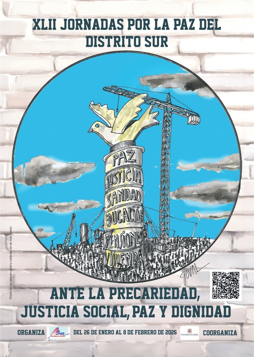 Jornadas sobre paz, justicia social y dignidad frente a la precariedad, cubriendo temas como sanidad, educación, pensiones y vivienda.